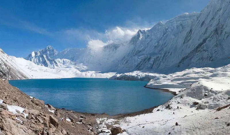 The trail continues up the valley alongside glacial streams and dramatic rock faces. Pass by Lungsumgba Gompa, a centuries-old monastery carved into a cliffside, before arriving at Thangnak, a small settlement used by climbers for acclimatization.
